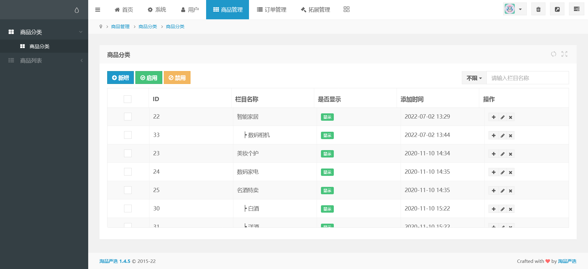 商品分类添加修改