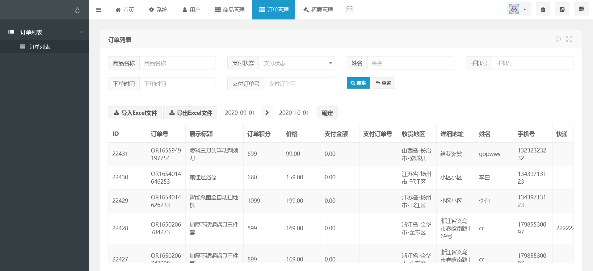订单导出与导入