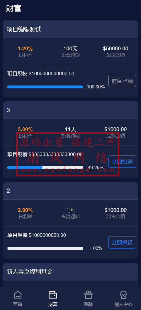 新UI多语言三级分销投资理财系统 分类精品资源时间2024-01-28 11:55:19发布南风网络浏览6684 摘要:新UI 多语言三级分销投资理财系统/矿机理财/新能源理财/系统全开源 前端VUE 后端PHP 可用作于矿机理财 新能源理财 酒店理财 医疗理财等... 新UI 多语言三级分销投资理财系统/矿机理财/新能源理财/系统全开源 前端VUE 后端PHP 可用作于矿机理财 新能源理财 酒店理财 医疗理财等带团队三级佣金 可设置推广人数才能投资免责声明:1.本站提供的一切源码、教程和内容信息仅限用于学习和研究目的;不得将上述内容用于商业或者非法用途! 2.本站信息来自网络收集整理,版权争议与本站无关。您必须在下载后的24个小时之内,从您的电脑或手机中彻底删除上述内容! 3.本站提供的源码,模板,插件等其他资源都不包含技术服务,敬请谅解! 4.本站资源售价只是赞助,收取费用仅维持本站日常运营所需! 5.本站不保证所提供下载的资源准确性安全性和完整性,源码仅供下载学习之用! 6.如用于商业或者非法用途,与本站无关。一切后果请自行负责!南风网络-精品海外源码网 区块链质押挖矿理财矿机 二开多语言平台币交易所/外汇交易/币币交易/合约交易/期权交易/法币交易/质押挖矿/IEO申购 英 德 法 意大利 罗曼什 多国语言APP评分刷单源码